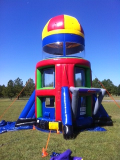 The Airborne Adventure is a one-of-a-kind inflatable attraction that allows your guests and attendees to experience life in the clouds! The game has an inner capsule that can hold one adult or two children, who are then harnessed in a parachute. A flick of the switch sends the adventurous player high into the air, almost 20 feet above the ground, for a bird's eye view of the entire event or party! Once the blower is turned off, the participant is gently lowered back to Earth for a safe and soft landing. This is a slow ride that is recommended for small children.