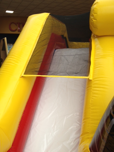 The Cars Speedway has a large interior jumping area and pop-up obstacles. It also has 2 seperate climb and slide areas.