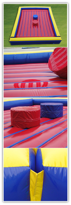 The Pedestal Joust inflatable game offers plenty of straight-up jousting. Secure safety walls and added protection that only comes with an inflatable game. Players can challenge each other as they each climb up onto their own pedestal, using oversized inflatable joust poles to try and knock one another to the game floor. With an eye-catching red, blue, and yellow color scheme, this inflatable jousting game will attract attention and keep guests lined up to get their shot at pretending to be an iron-clad jousting knight.