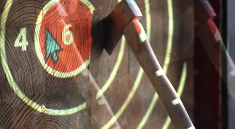 A mobile axe throwing trailer is two lanes of axe throwing put inside a trailer, simple as that! Our axe throwing trailers have state of the art projection targets, where participants can play various games along with your traditional targets. You can fit around 4 participants (2 per lane) at a time inside the trailer. Other guests can easily view from outside the trailer.