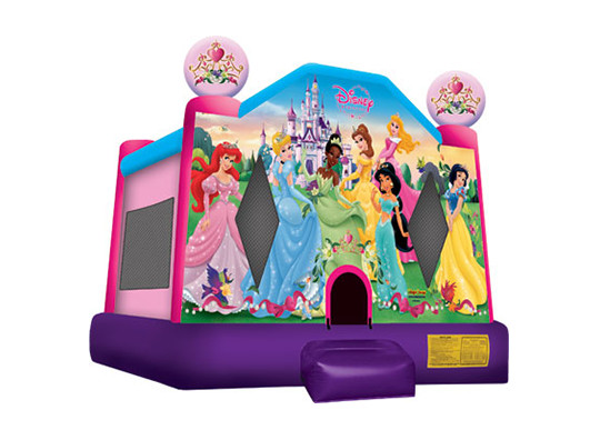 This licensed Disney Princess bounce house rental brings the fairytale to life with digital printing fit for any princess or festivity. Approaching participants are greeted by Cinderella, Snow White, Sleeping Beauty, Belle, Jasmine and Ariel for enchanting fun and imaginative play! Ideal for any girly party or event, participants can bounce or practice their royal proclamations inside this entertaining jumper!