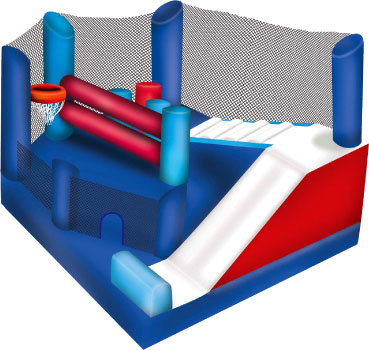 The 5-in-1 combo style jumper is the best in inflatable bounce houses! The spacious interior jumping area offers a basketball hoop and both log and pop-up obstacles. This bouncy castle has an exciting climb feature and a convenient exit slide for hours of active fun! Parents and spectators are offered easy viewing with the 360-degree mesh sides of this moonwalk.