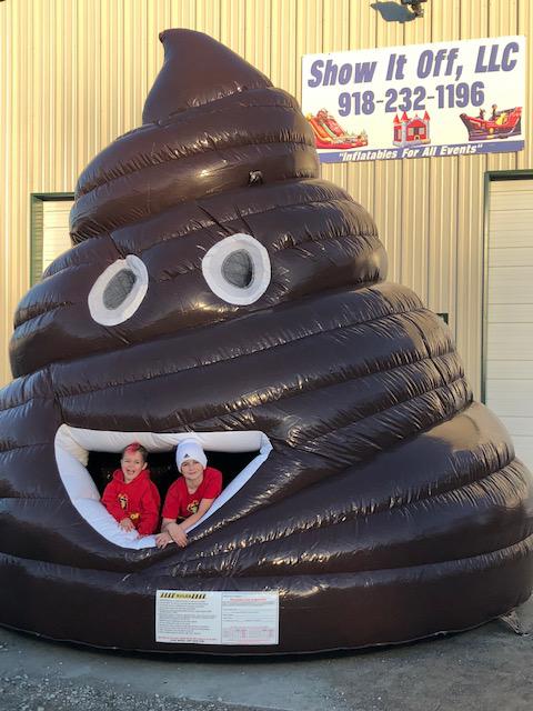 You’ve been able to get the Poop emoji in hats, sheets, pillows, coffee, cups, cushions and much more. NOW, be the first to rent the Poop Jumper, also known as the Lil Stinka inflatable in our brand new pile of fun!