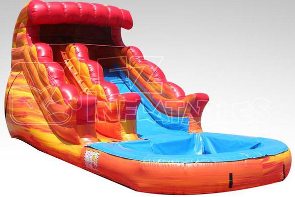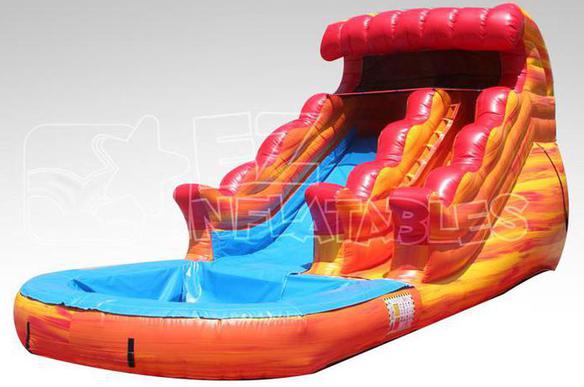 The 13ft Volcano Rush Water Slide has a out of this world look to go along with the wet fun it provides. This 13 foot unit can be used as a water slide for hours of slipping and sliding fun on a hot day. This slide is complete with a small pool, slide down the slide and splash safely in the pool of cool water! This slide is recommended for ages 6 and under!
