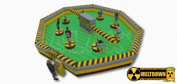 Toxic Meltdown is our 8-player action game, which challenges your stamina, agility and reactions. Not one but two spinning boom arms try to knock you off your podium. You have to duck underneath or jump over the foam boom. Who will be the last one standing?